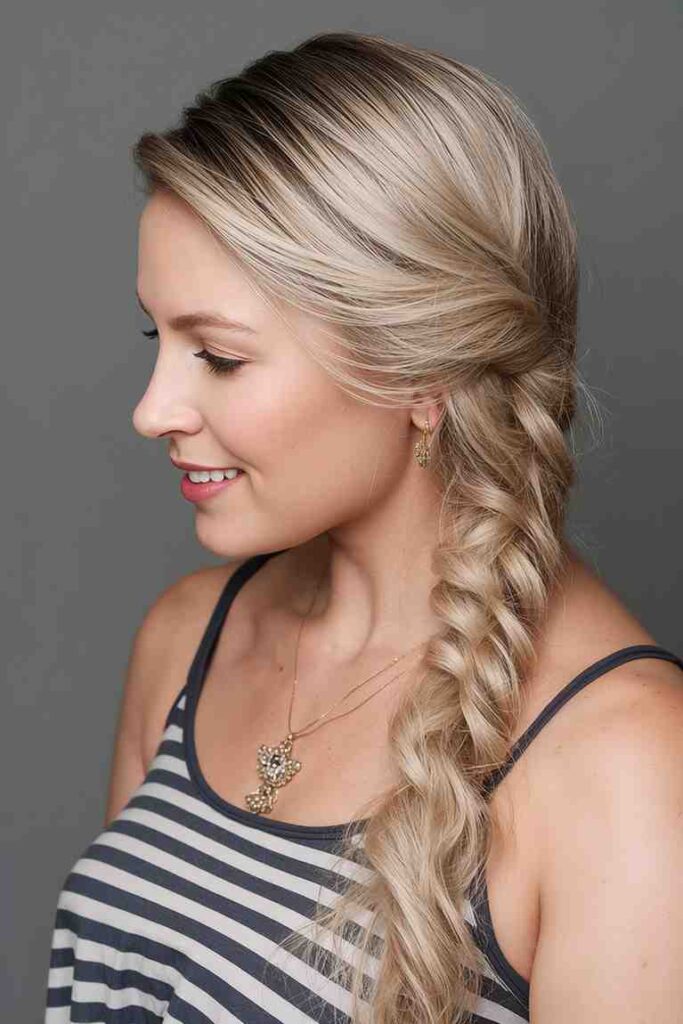 Combine a fishtail braid with a ponytail for an eye-catching style. It’s quick to achieve and adds texture and interest to your hair.