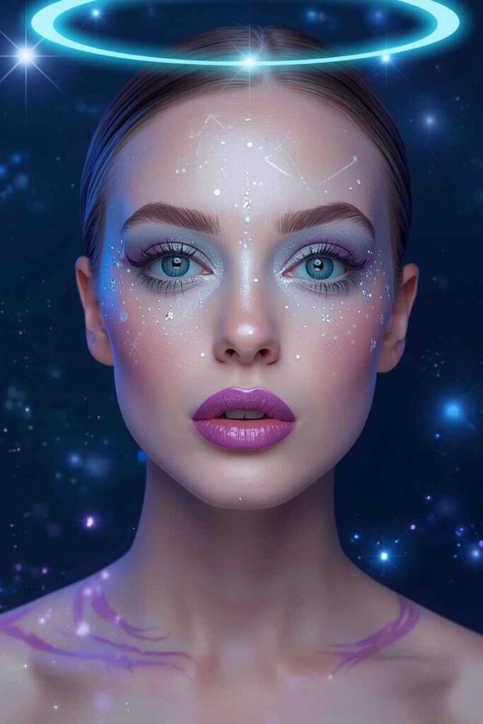 Draw inspiration from constellations and cosmic dust. Use navy and midnight-blue eyeshadows blended with silver sparkles. Dot tiny stars or use glitter liners for celestial patterns. Complement it with a muted mauve or nude lip. This starry-eyed witch radiates cosmic glamour, perfect for those who love to blend artistry with enchantment.