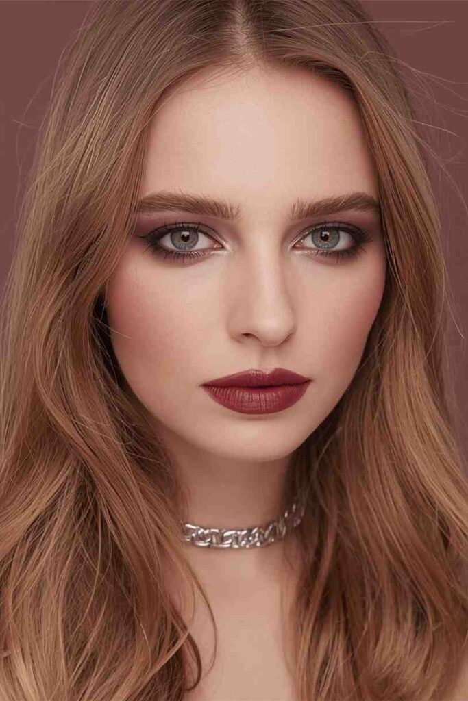 If you prefer something softer, try mauve and rose-gold tones. Blend muted purples and pinks for your eyes, paired with a berry-toned lip gloss. The result is feminine yet mysterious. This style radiates understated witchy beauty—perfect for those who love glamour without the heavy darkness.