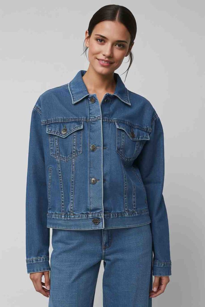 A denim jacket with matching jeans can look chic if styled thoughtfully.