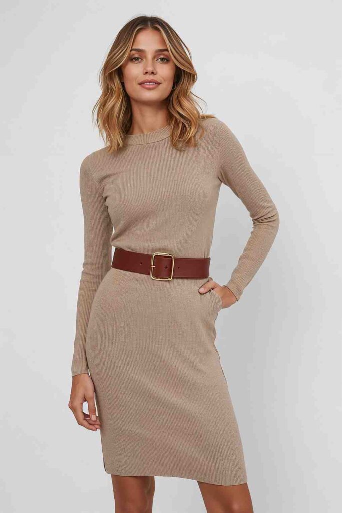 A simple knit dress paired with a belt instantly looks structured and expensive.