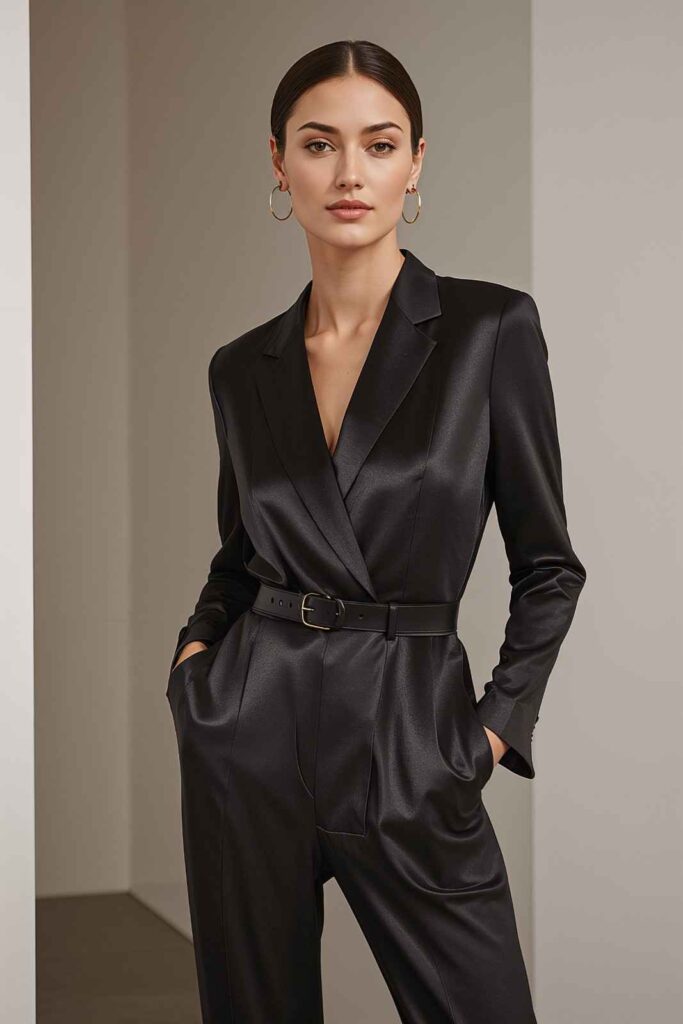 A tailored jumpsuit cinched with a belt is a simple yet luxe-looking outfit.
