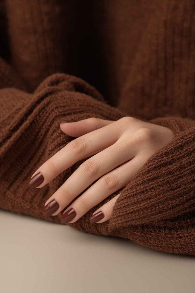 This look pairs beautifully with neutral outfits, particularly beige, cream, or olive tones. Whether matte or glossy, chocolate brown sweater nails deliver a comforting, grounded holiday aesthetic that’s both trendy and timeless.