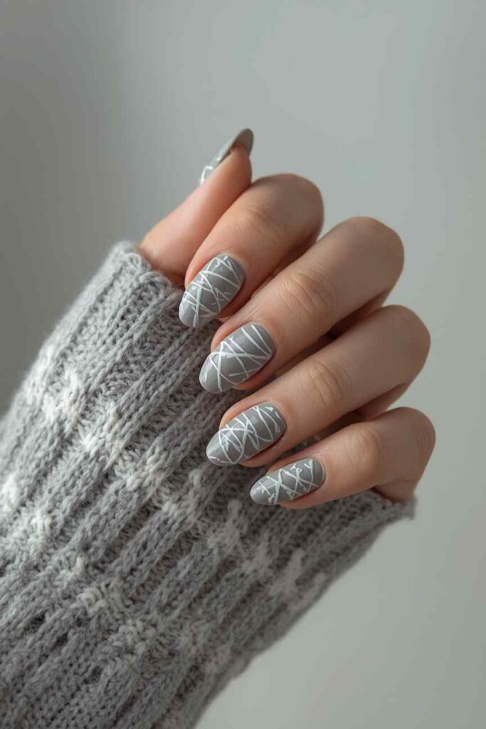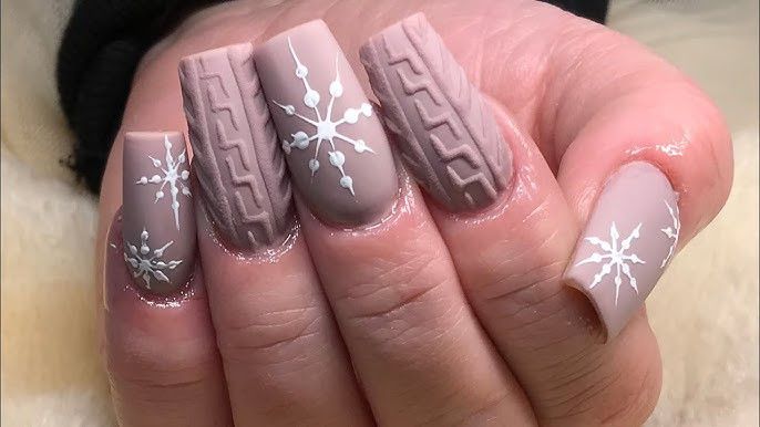 Grey sweater nails work with any winter outfit, making them a practical yet beautiful choice for everyday December wear. The subtle color palette keeps the look polished, while the raised knit detailing adds tactile depth and seasonal charm.