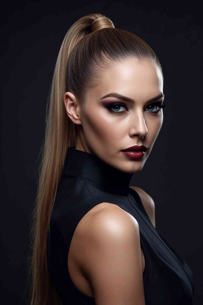 A sleek high ponytail gives a modern edge to witch costumes. It’s polished yet powerful, making it ideal for parties or work events.