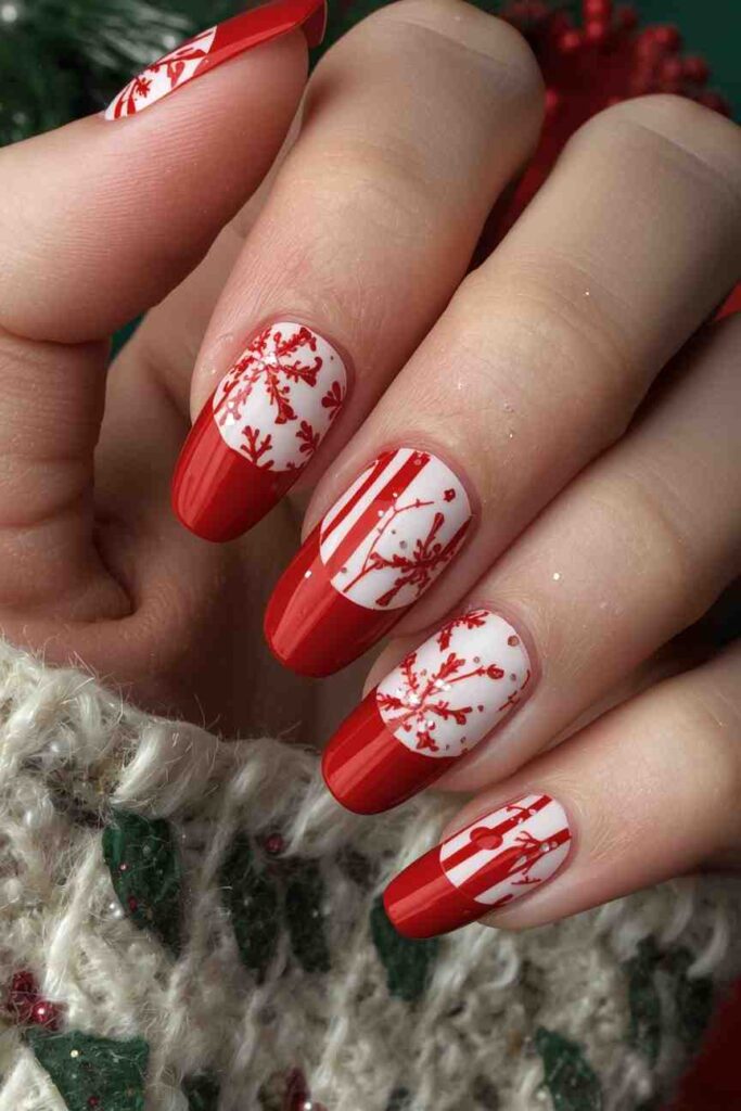 Pair these nails with red sweaters, gold earrings, or winter scarves to create a coordinated holiday aesthetic.
