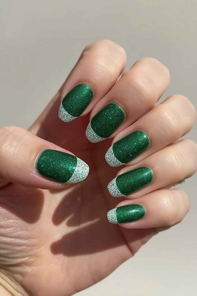 Forest Green Glitter French Tips combine rich holiday color with sparkling elegance. The deep green tone adds warmth and sophistication, while the glitter makes the look festive and glamorous. This design works beautifully for anyone who prefers dark, earthy shades during winter.