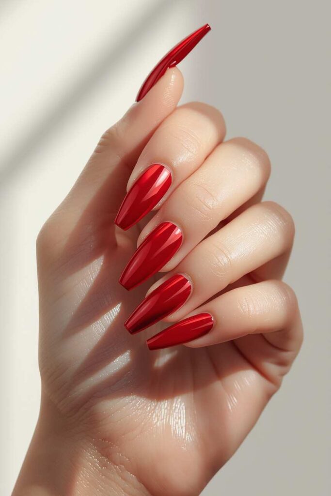 The red chrome makes your nails stand out in photos and looks stunning under holiday lighting. This design is ideal for anyone who loves modern, glamorous nail trends with seasonal flair.