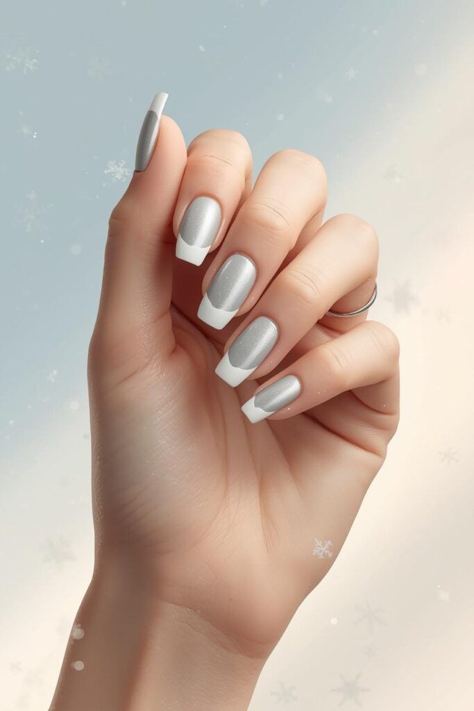 Silver Snow French Tips offer a dreamy winter aesthetic inspired by frosty mornings and shimmering snowflakes. The metallic or glittery silver tips reflect holiday lights beautifully, making your nails look elegant and seasonally appropriate.