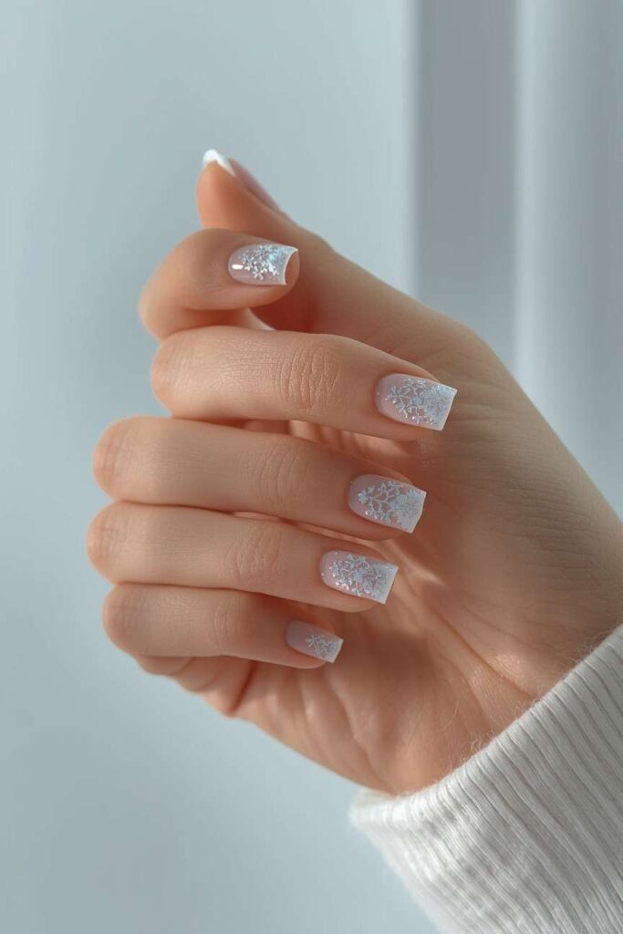 This design is ideal for anyone who loves subtle nail art that feels festive without being overwhelming. The combination of nude bases, minimalist tips, and tiny snowflakes creates an effortlessly charming winter look.