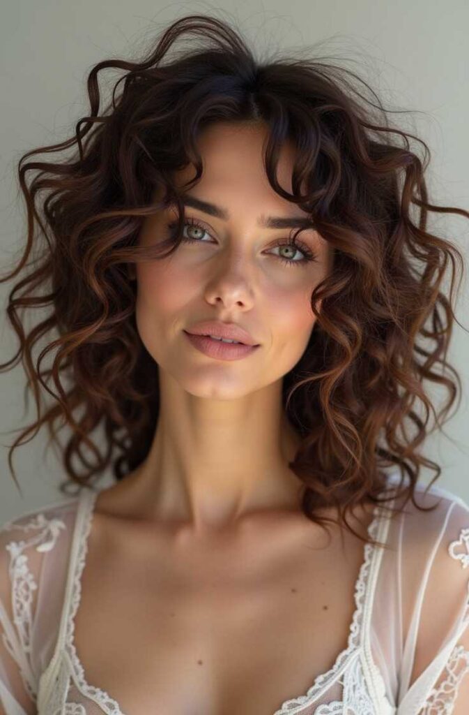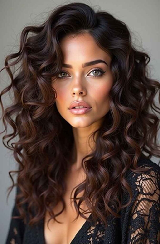 Long loose curls add length, elegance, and flow to your winter style. Their cascading shape creates a romantic, layered effect that complements winter sweaters and long coats. Longer hair showcases curls beautifully, especially when styled loosely to maintain movement. This look is ideal for winter events, date nights, or simply embracing soft, feminine beauty throughout the season. Long curls also frame the face delicately, giving a flattering winter glow.