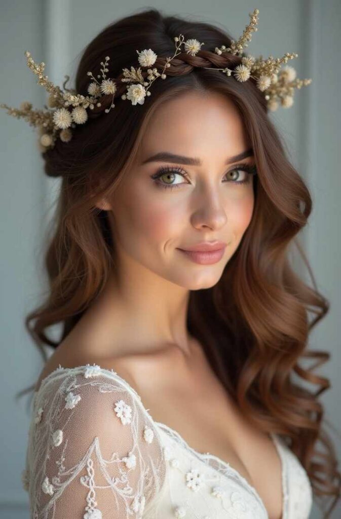 15. Loose Curls with Braided Crown