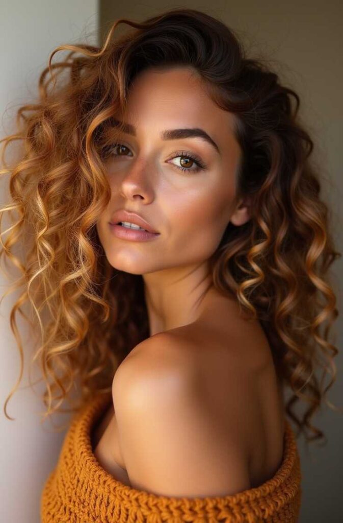 Whether you prefer caramel, ash blonde, or honey touches, highlighted loose curls offer warmth and seasonal charm.