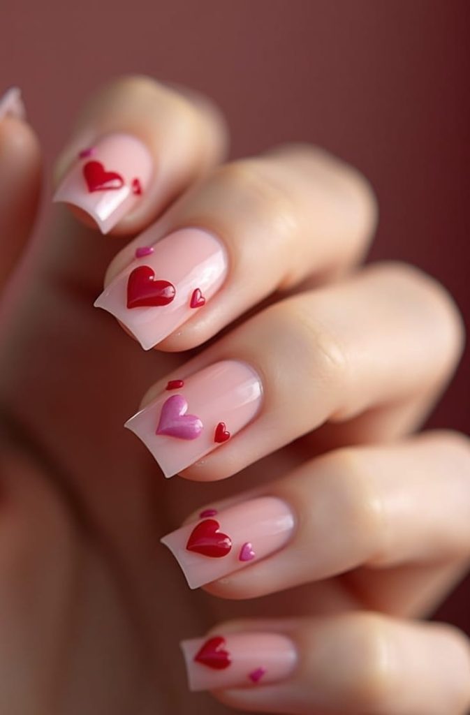 Introduction: Clear nails with small heart accents are chic and modern. This minimalist approach lets your natural nails shine while adding a touch of love-themed artistry.