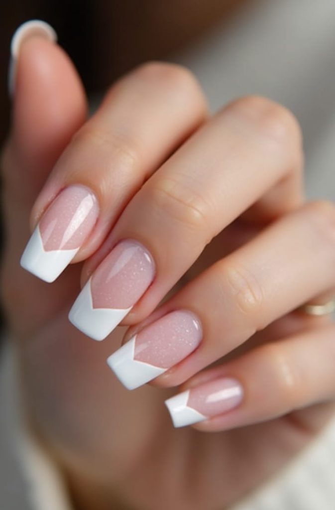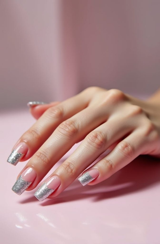 Introduction: Nude nails with delicate glitter tips are minimal yet festive. The subtle sparkle adds a hint of glamour without overwhelming short nails.