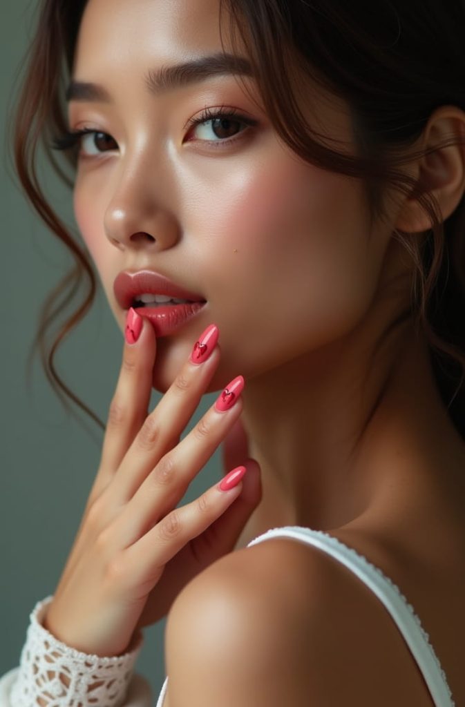 Introduction: A single tiny red heart on a neutral or nude base is perfect for short nails. This simple design conveys Valentine’s charm without overwhelming the nail’s natural shape. Minimal yet playful, it’s ideal for those who love understated romance.