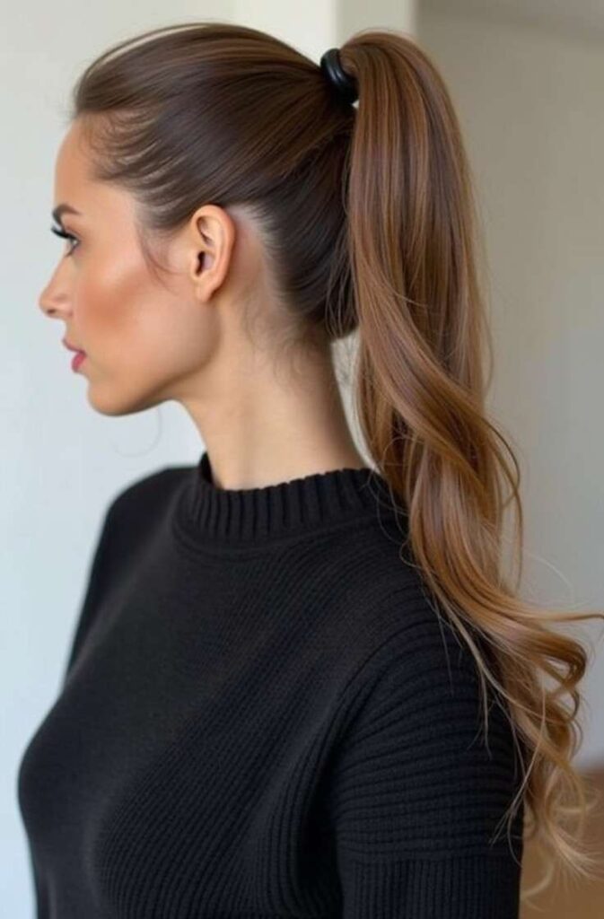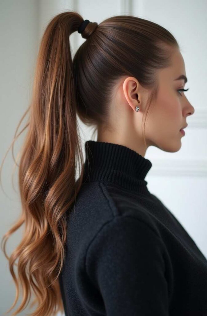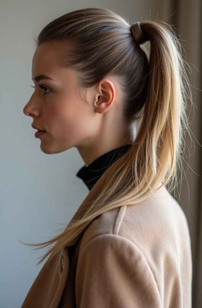 15 Sleek Winter Ponytail for a Clean Modern Style
