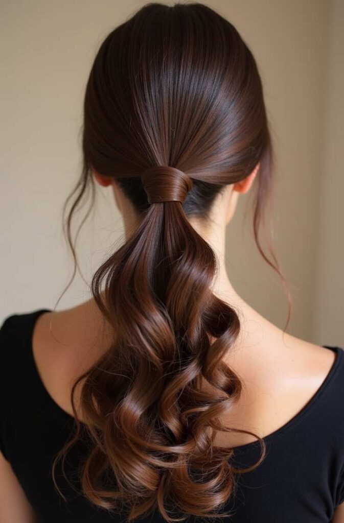 This winter-ready ponytail combines sleek roots with gentle waves down the length, offering the perfect balance between structure and softness. The sleek top keeps your look controlled and polished, while the waves add warmth, movement, and romance—ideal for winter dates, photoshoots, or casual outings. This style complements cozy winter energy while still appearing stylish and modern. It’s easy, flattering, and pairs beautifully with feminine winter outfits.