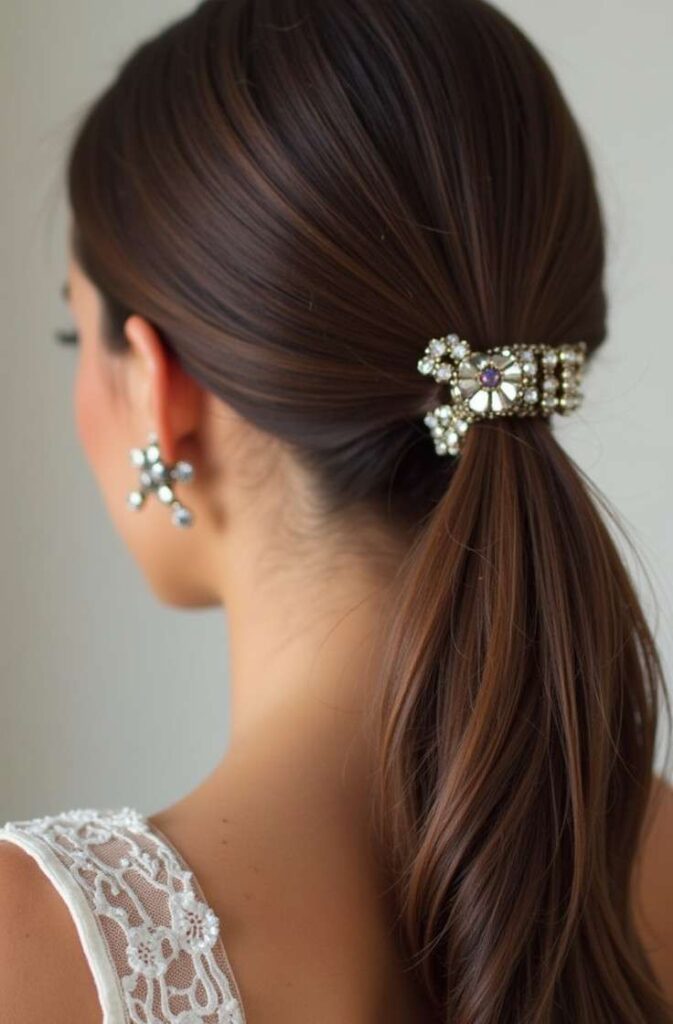 Add winter sparkle to your sleek ponytail by incorporating subtle hair jewelry like clips, cuffs, or decorative pins. This style transforms a simple ponytail into a chic winter accessory, ideal for holiday photos, date nights, or seasonal festivities. Hair jewelry adds personality without sacrificing the clean structure of your ponytail. It also complements winter’s metallic tones—silver, gold, and rose gold—enhancing your overall seasonal vibe.