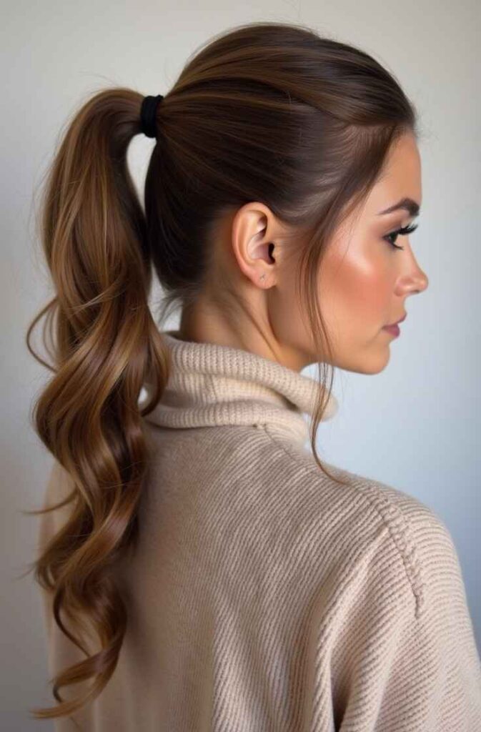 Whether you’re heading to work, a holiday event, or simply running errands, this ponytail maintains its polish all day long. Its ability to complement winter essentials, from scarves to coats, makes it a go-to styling option.