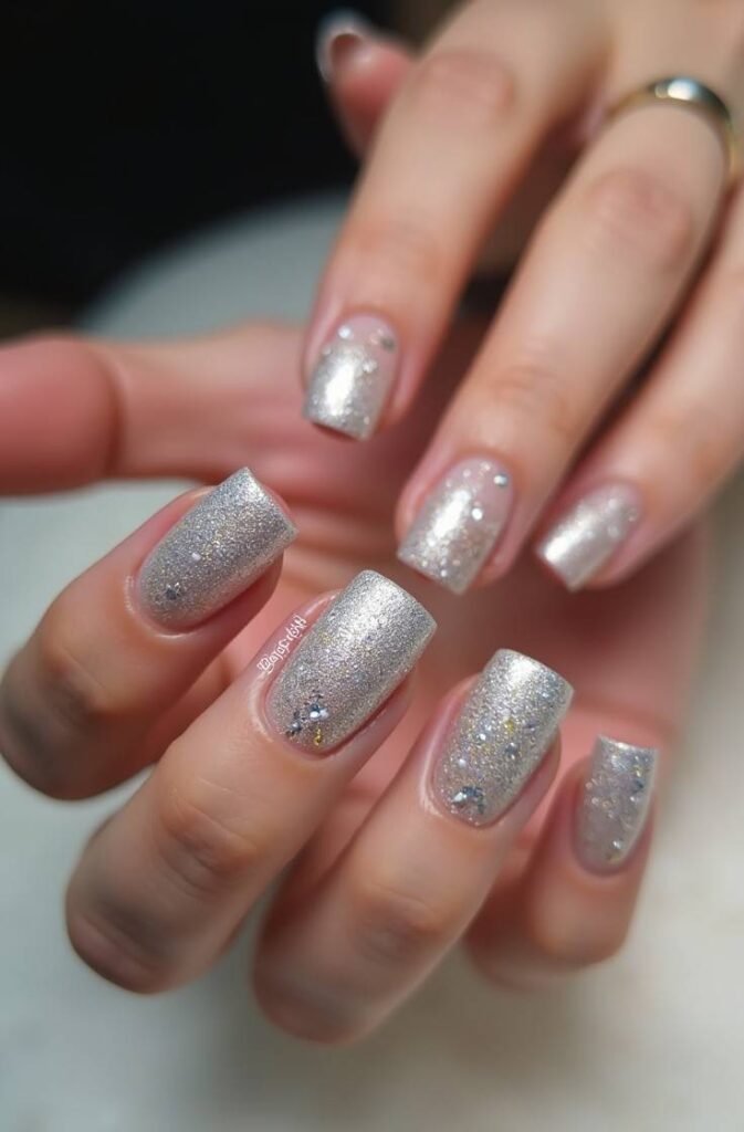 The glitter adds dimension and shine, catching the light beautifully and enhancing the magical feel of the design. If you’re looking for something eye-catching and festive, this style is a seasonal must-try.