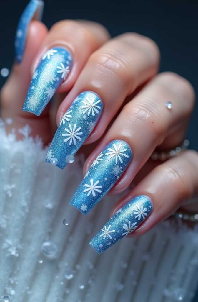 From icy blues to glittery whites, each look offers something unique, stylish, and full of winter wonder. Get ready to elevate your cold-weather manicure!