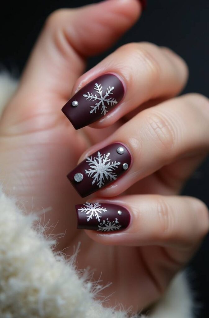 12. Burgundy Snowflake Nails