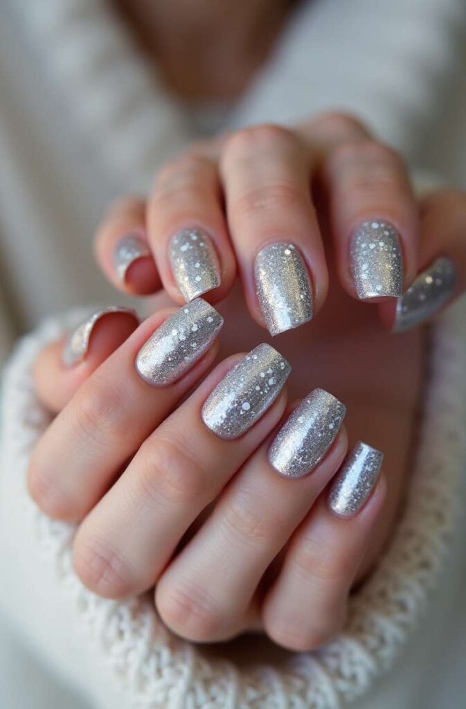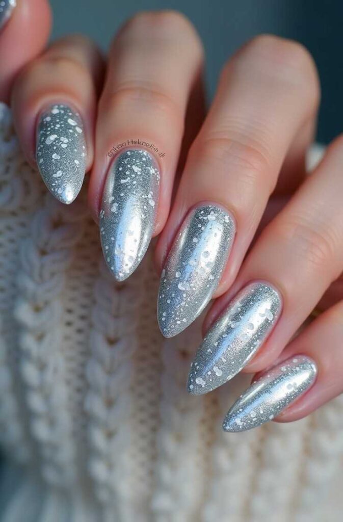 This design is perfect for holiday parties, night outings, and winter celebrations where you want your nails to make a statement. The contrast between ultramodern chrome and traditional snowflakes creates a balanced look that’s glamorous yet festive.