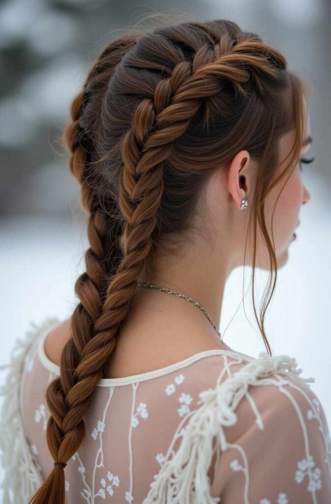 These braids work especially well on long hair and hold beautifully even when layered under hats or hoods. Whether you want a cute cold-weather vibe or a more polished seasonal style, double fishtails deliver reliable winter charm.