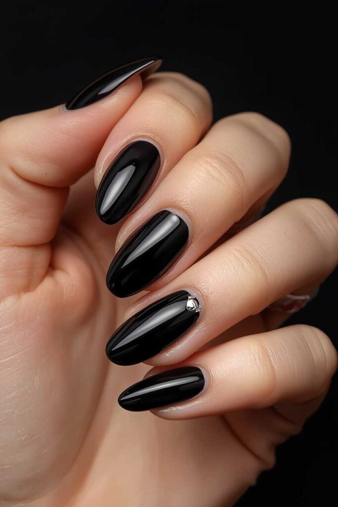 Nothing says Halloween sophistication like jet-black nails with a glossy finish. Add a hint of metallic silver or gold accents on one or two nails for contrast. The simplicity of black exudes confidence and mystery while keeping your look polished. Perfect for pairing with elegant costumes or evening wear, this timeless shade never goes out of style and instantly adds an eerie yet refined vibe to your outfit.