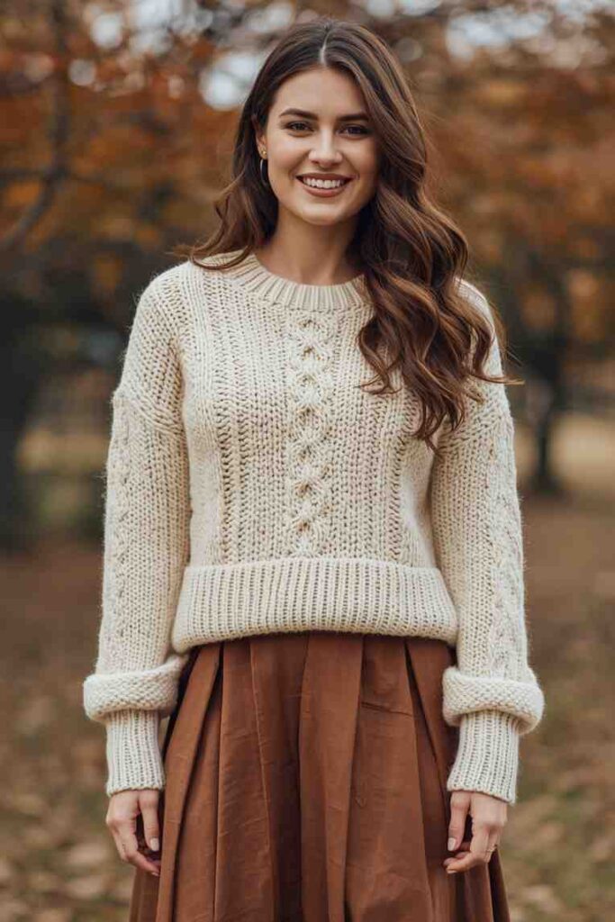 From ribbed designs to cozy cable knits, this look suits casual outings and semi-formal events alike. Whether you’re heading to a brunch or enjoying a holiday evening walk, this outfit captures the charm of winter styling beautifully.