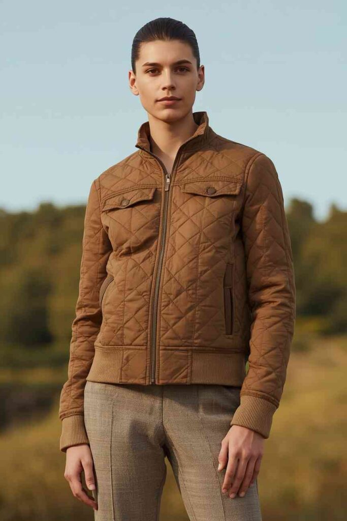 Quilted jackets offer warmth without excess bulk, making them an excellent choice for chilly December days. When paired with tailored wool trousers, the result is a refined yet relaxed winter outfit.