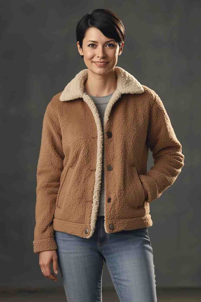 The soft sherpa texture adds charm and warmth, while denim keeps the look timeless. This combo is easy to wear and always on trend.