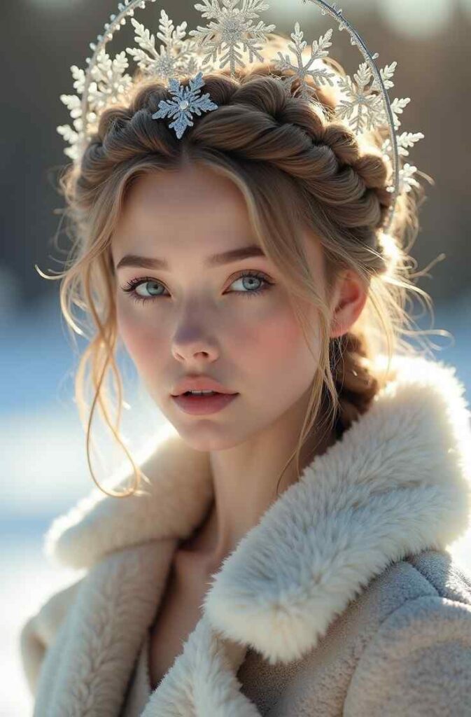 The braided pieces bring dimension and a handcrafted winter feel, while the bun keeps the style polished and timeless. Accessorize with subtle pearls or crystal pins to complete the look and give your hairstyle a gentle frosty sparkle perfect for the season.