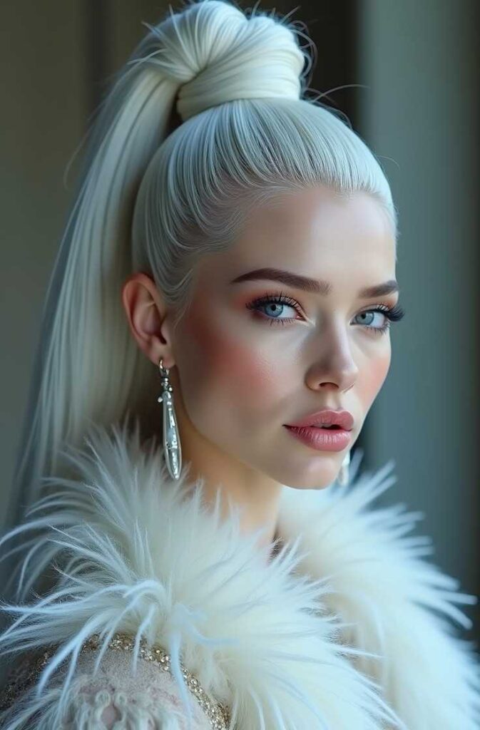 This hairstyle is perfect for winter weddings, holiday parties, or photoshoots. Its luminous appeal enhances warm sweaters, velvety dresses, and glittering gowns. The pearly sheen gives your entire look a romantic, winter-wonderland feel.