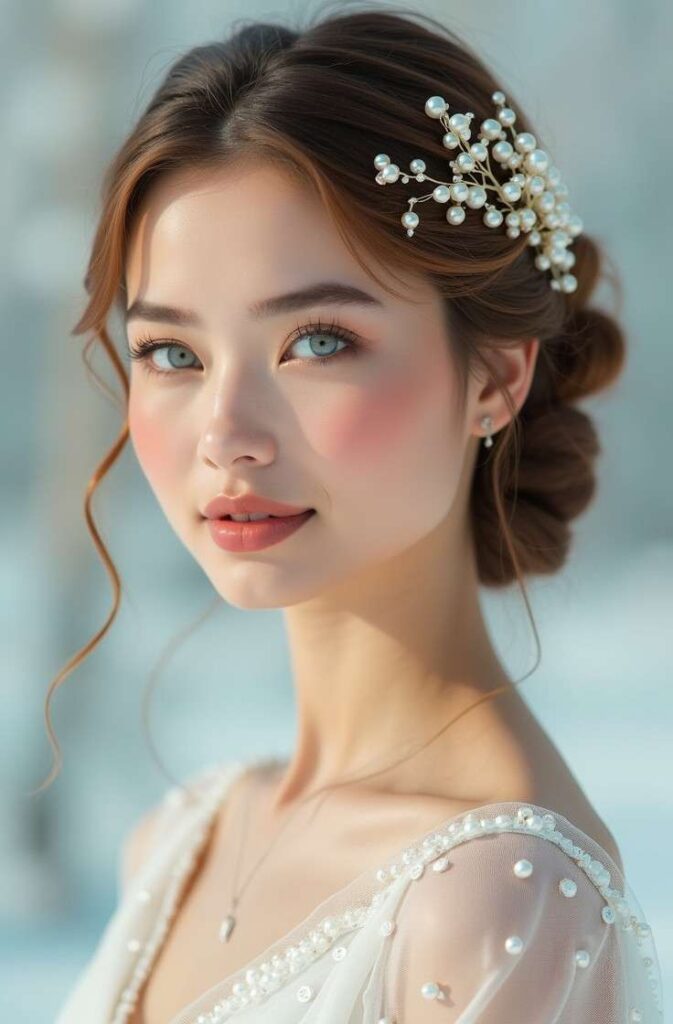 Pearls instantly elevate any hairstyle, and winter is the perfect season to embrace their icy elegance. A winter pearl updo combines sleek or softly textured styling with scattered pearl accessories for a luxurious, frosty finish.