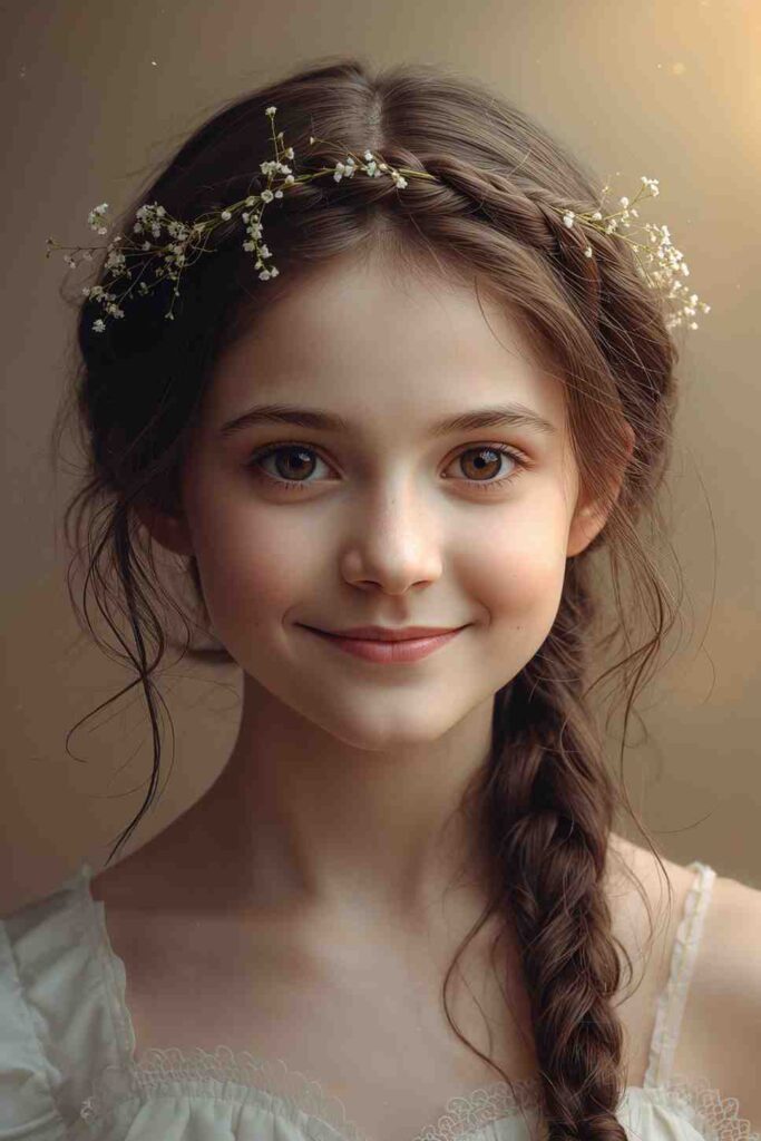 A braided crown wraps around your head, creating a soft, whimsical look—great for fairies, goddesses, or haunted brides.