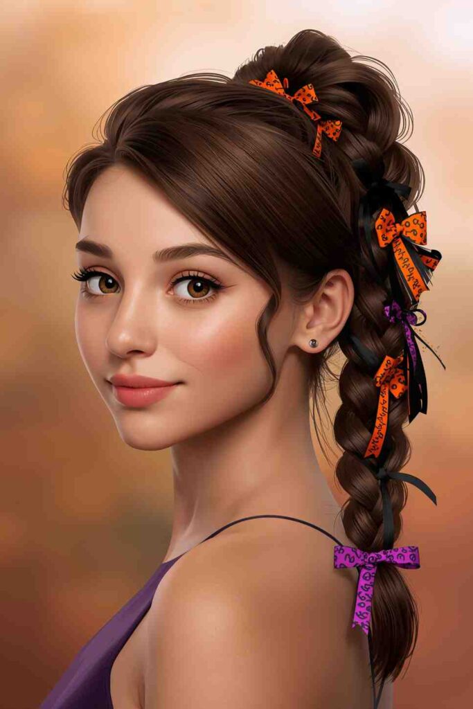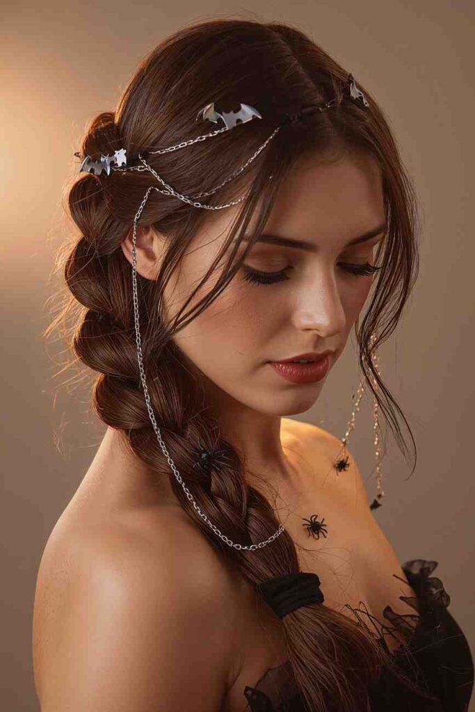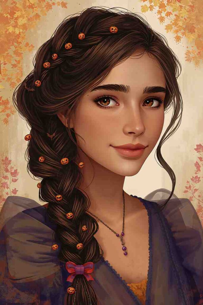 Adding tiny Halloween charms—like pumpkins, bats, or skull beads—to a side braid gives a festive finish.