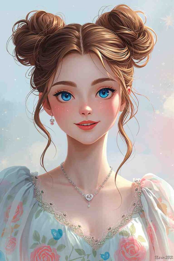 Double messy buns are playful and perfect for characters like fairies, dolls, or cosmic creatures.