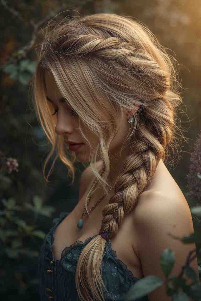 A messy fishtail braid brings texture and drama—perfect for mermaids, witches, or boho looks.