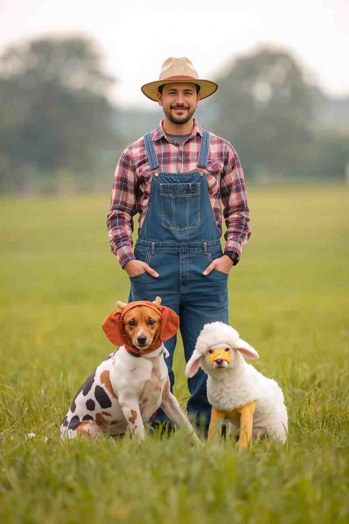 Dress up as a farmer while your pet plays the role of a cow, chicken, or sheep.