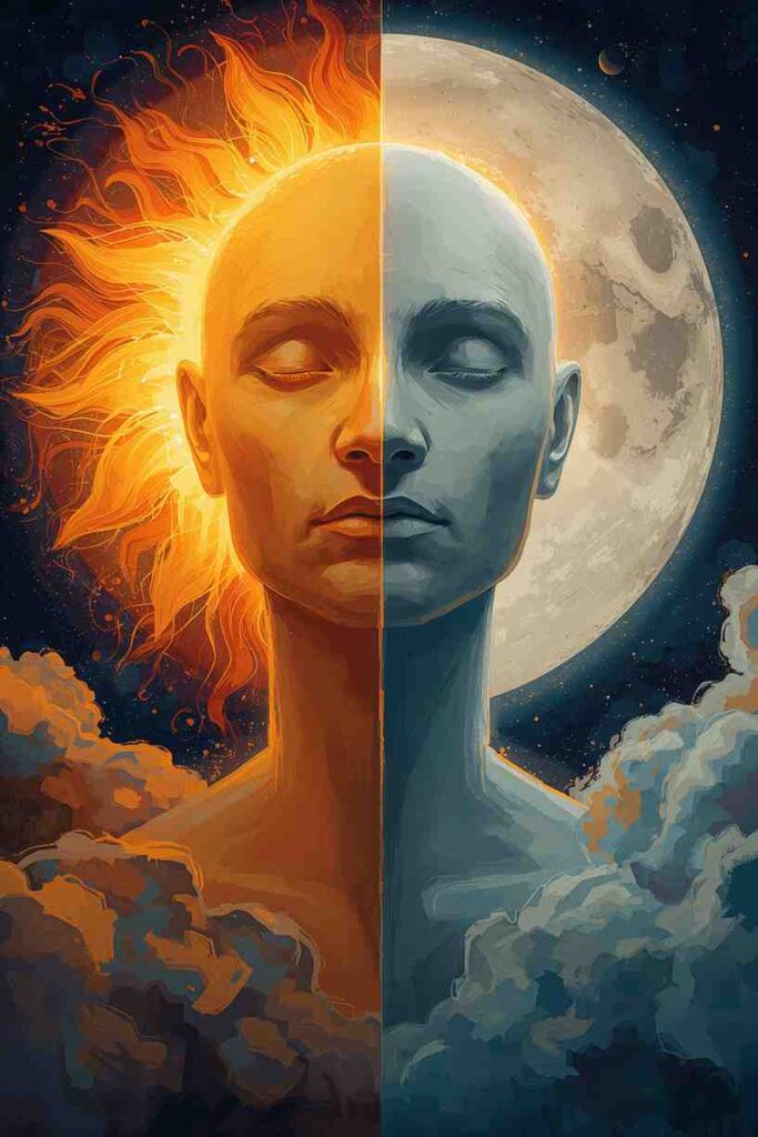 One of you can embody the glowing sun while the other represents the mysterious moon.