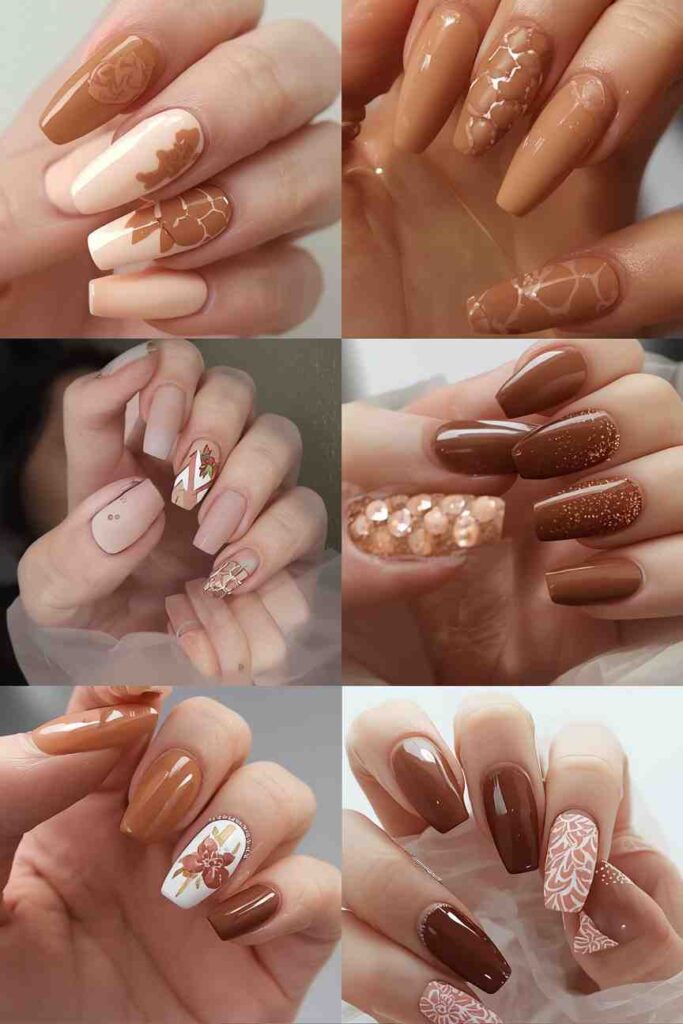 Caramel nails capture the cozy feel of autumn leaves. This earthy tone pairs beautifully with neutral outfits. Adding shimmer or metallic touches enhances the warmth and versatility of the design.