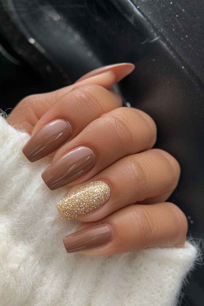 Chocolate nails are rich, cozy, and versatile. This shade complements gold glitter or matte textures, making it an elegant choice for the autumn season.