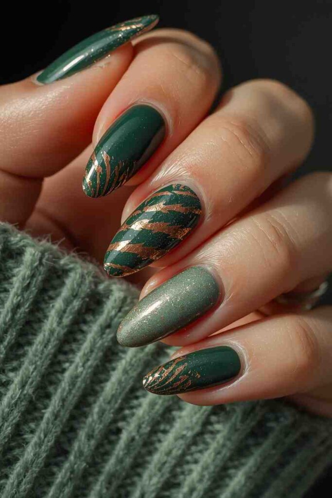 Forest green nails capture the lush tones of autumn foliage. Pairing with copper or gold accents enhances their bold, earthy elegance.