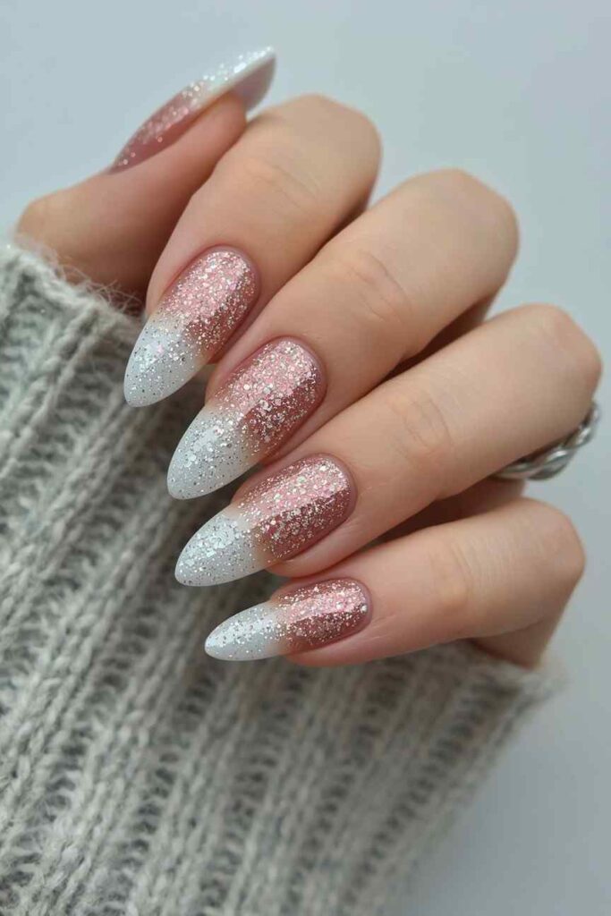 Glitter gradients elevate autumn nails with sparkle and elegance. Applying glitter to tips or accent nails adds a touch of glam without overwhelming the design.