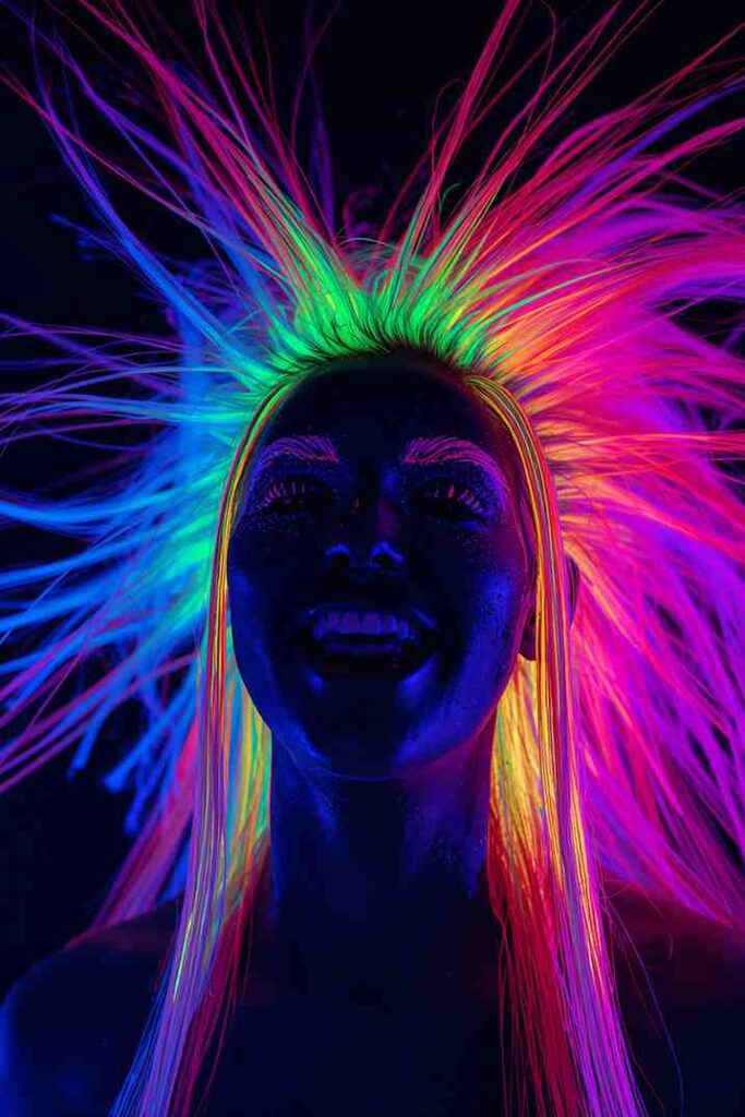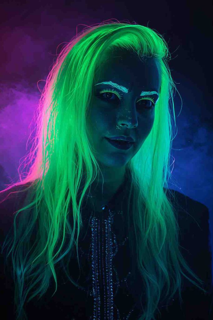 UV-reactive colors make your hair glow under black lights—perfect for raves, parties, or alien looks.