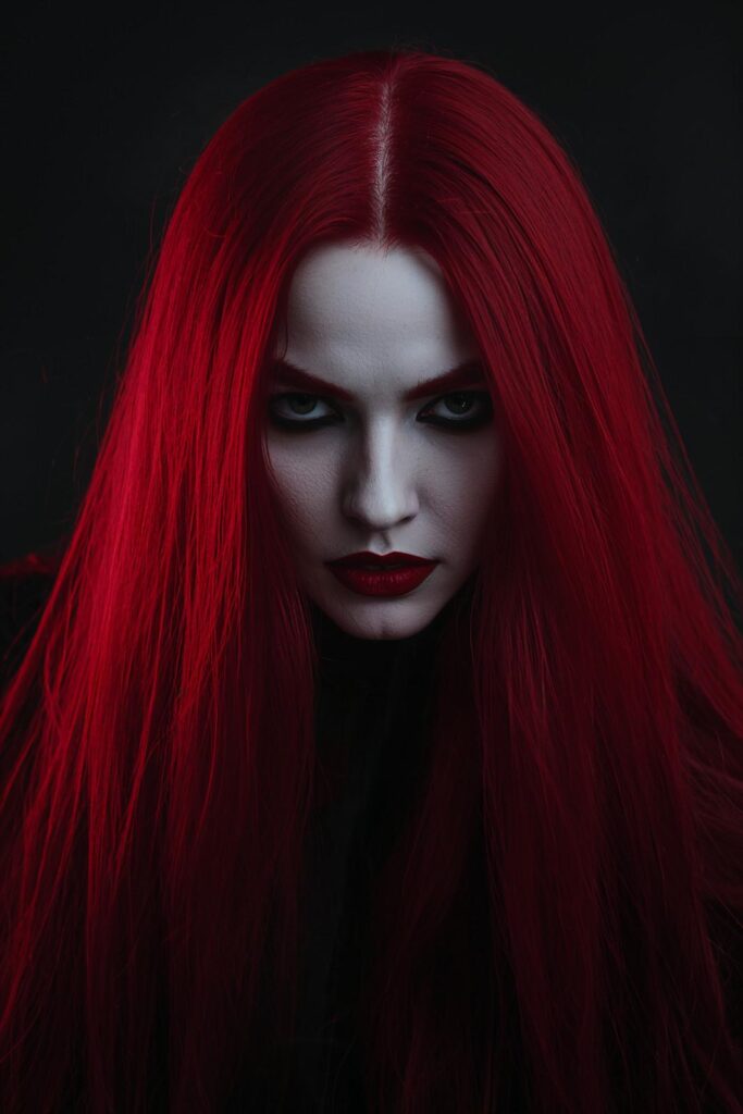 All-over blood red hair makes a chilling, dramatic statement—perfect for vampires, devils, or gothic looks.