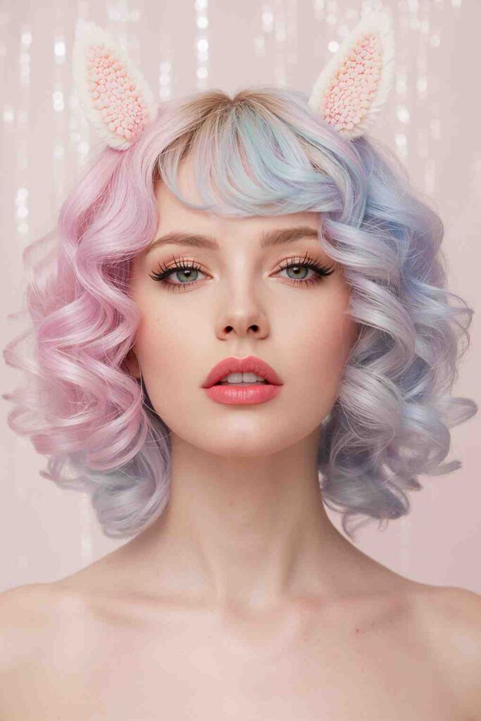Soft pink and blue pastel hair creates a whimsical, dreamy vibe—perfect for fairies, unicorns, or dolls.
