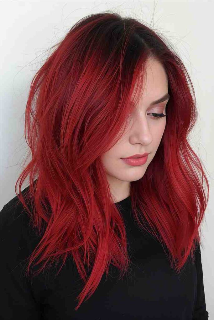 Style suggestions: Go for a sleek straight look or a messy bun to keep the focus on the color. Pair with red nails for a cohesive effect.